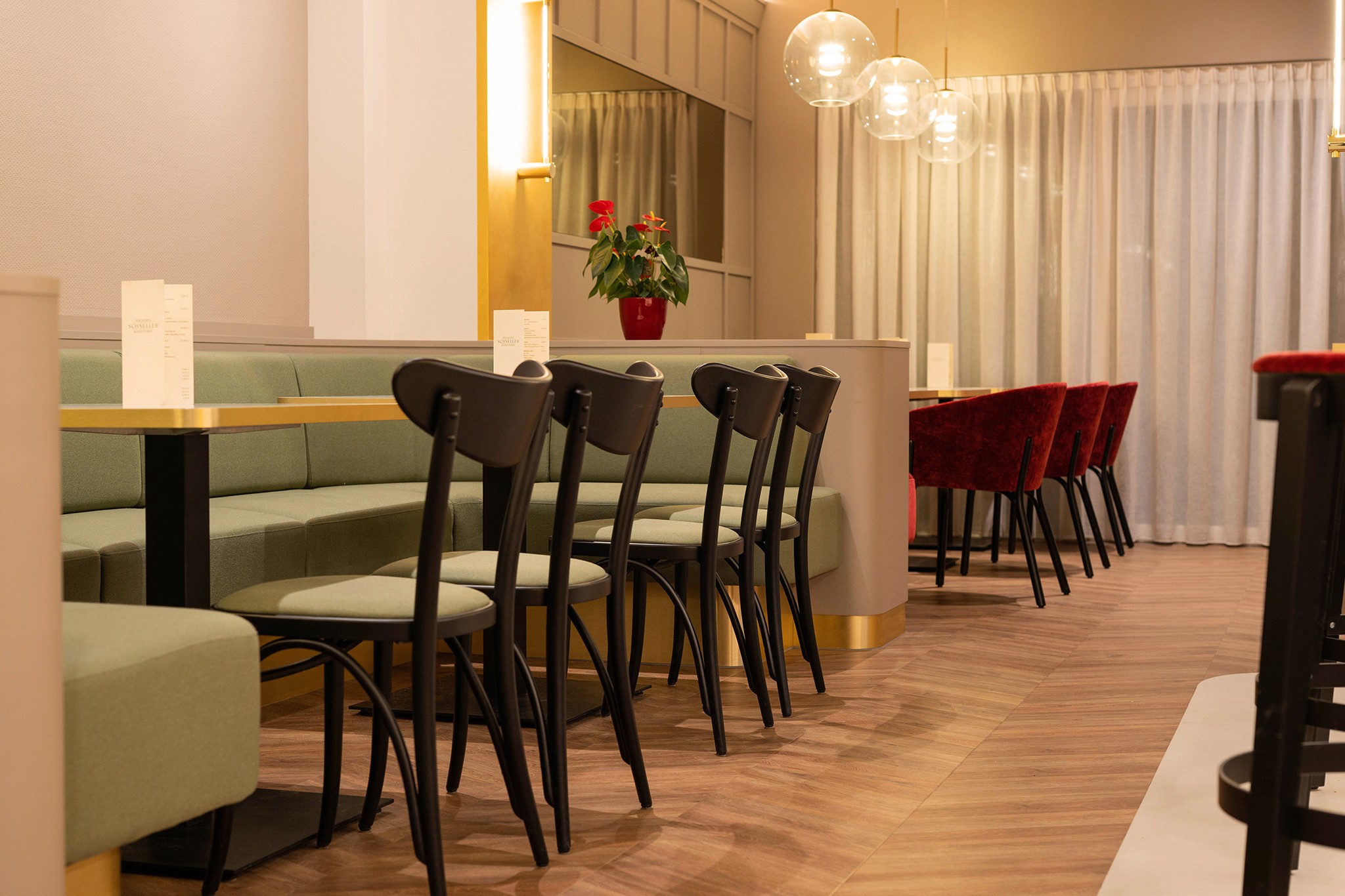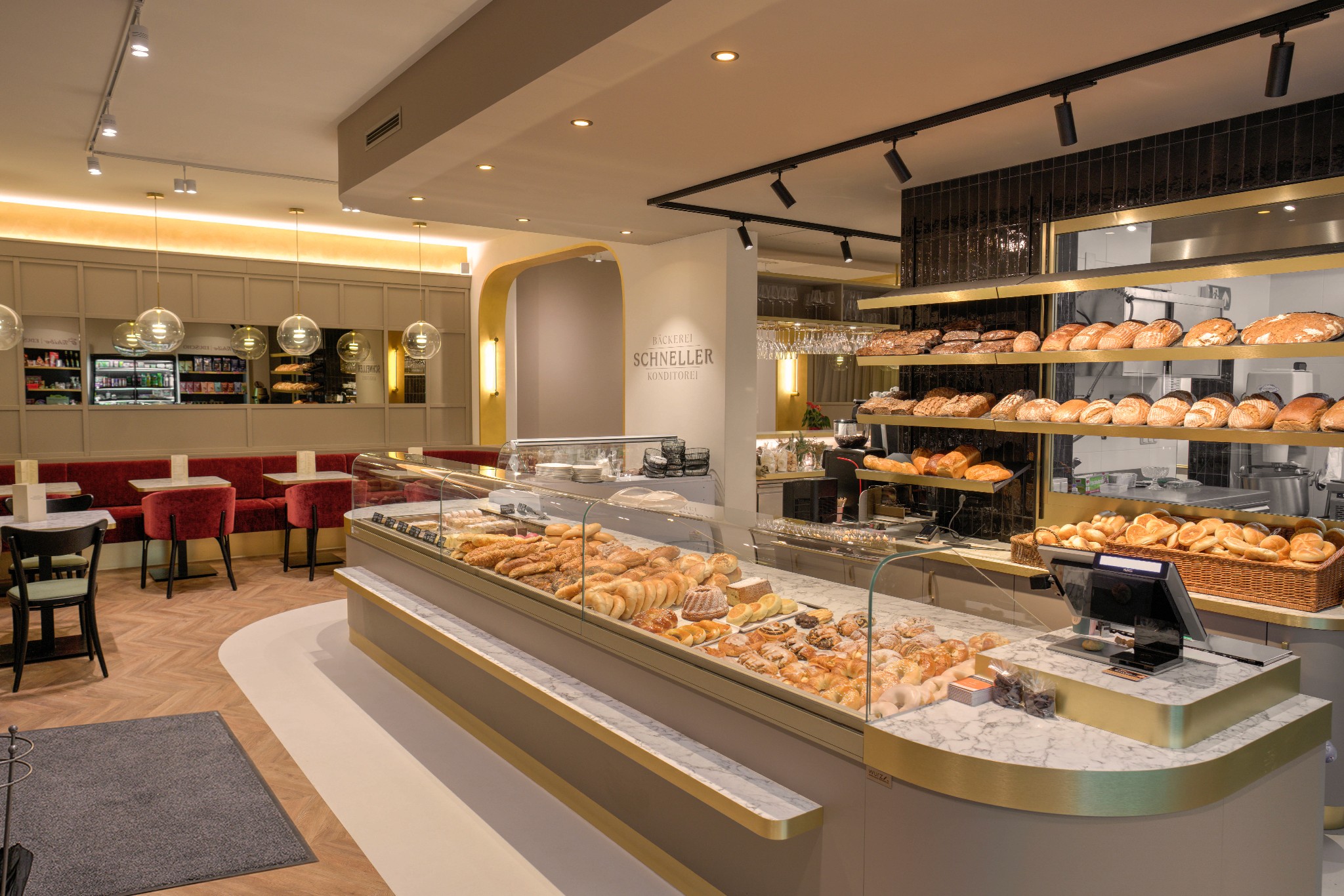 Das Ergebnis ist eine elegante Flagship-Filiale im Herzen St. Valentins mit Schaubackstube, lichtdurchflutetem Gastraum, komfortablen Bugholzstühlen, maßangefertigten Tischlermöbeln und der gewohnten Leidenschaft für Bäckerei- und Konditorhandwerk.